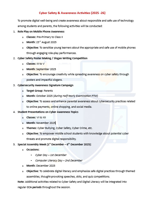 All the above mentioned clubs are committed to bring out the inspiring inherent versatility of the children by designing the different kind of activities which will definitely build a comprehensive understanding in a child’s approach. Every Wednesday club activities are conducted during the zero periods in which all the children are divided equally in three groups such as – sub-junior (std-I-II), junior (std-III-V) and senior (std-VI-XII).