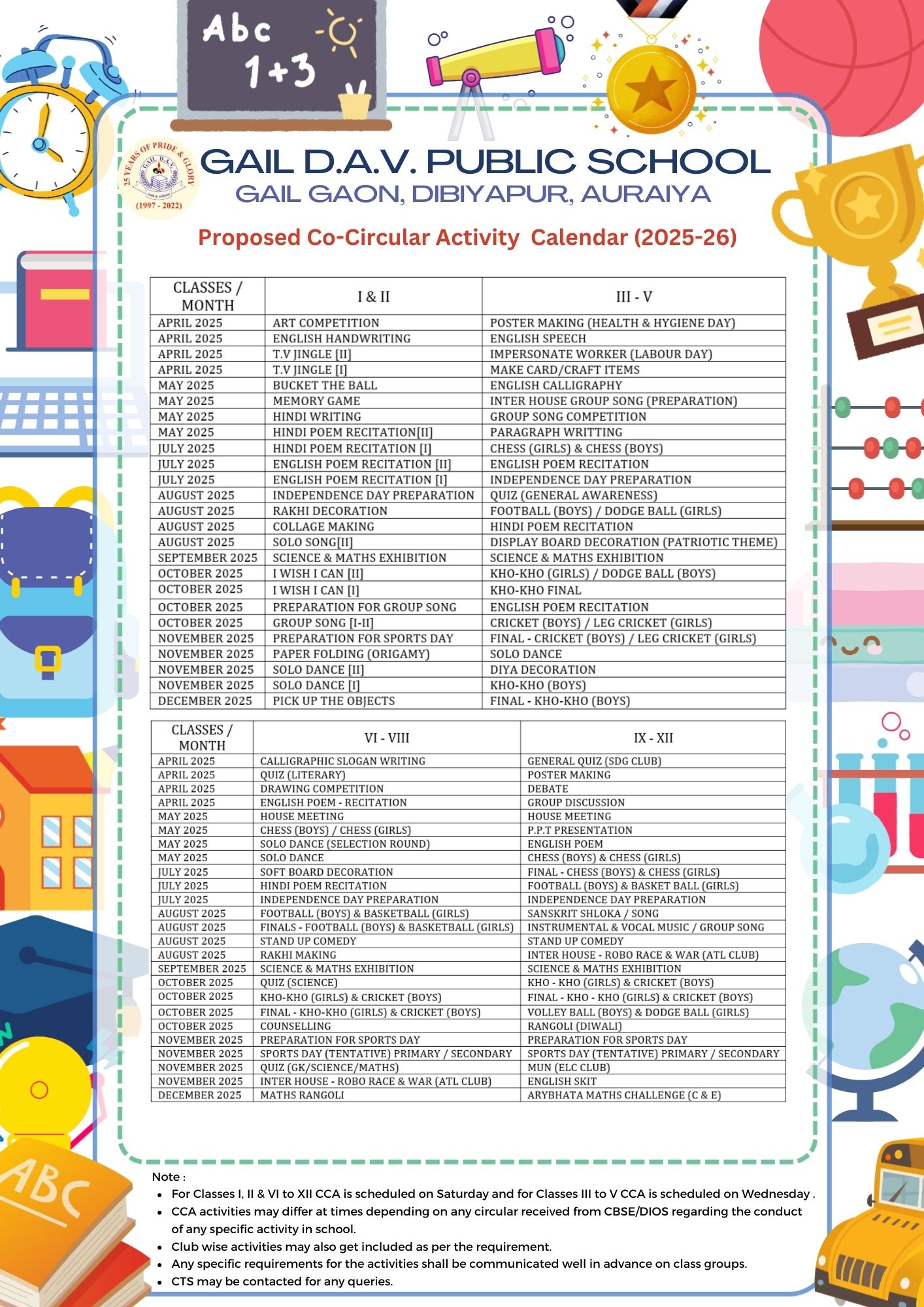 Learning with fun’ is the concept of the modern education, keeping in view this predominant thought, around two years back, GAIL DAV public school institutionalized different clubs in its curriculum to hone the latent talent of every child in all the spheres of life. The introduction of the clubs under mentioned has opened a wide range of vistas for the children to exhibit their different skills.